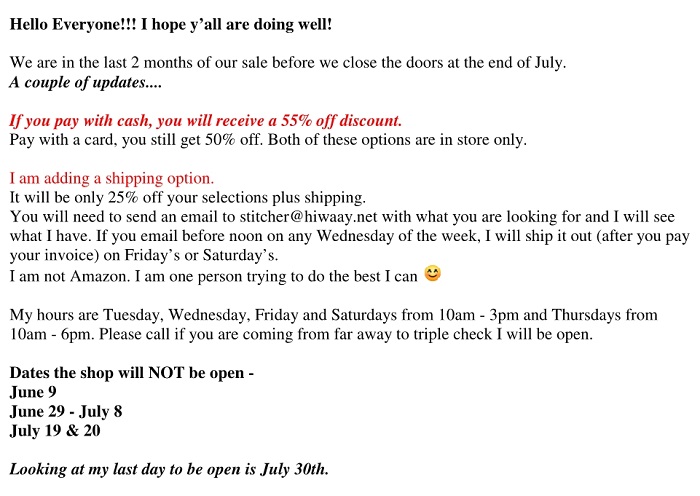 The comfty spot has been rearranged a bit with yarn sale - but there's still plenty of room to sit....